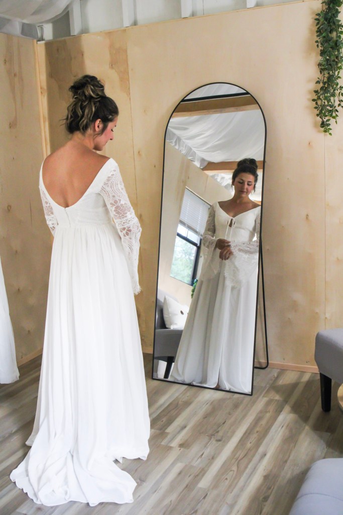 The Bridal Cabin is set up with Makeup Tables, Lighted Mirror, Full Length Mirror, Changing Area, and Seating.