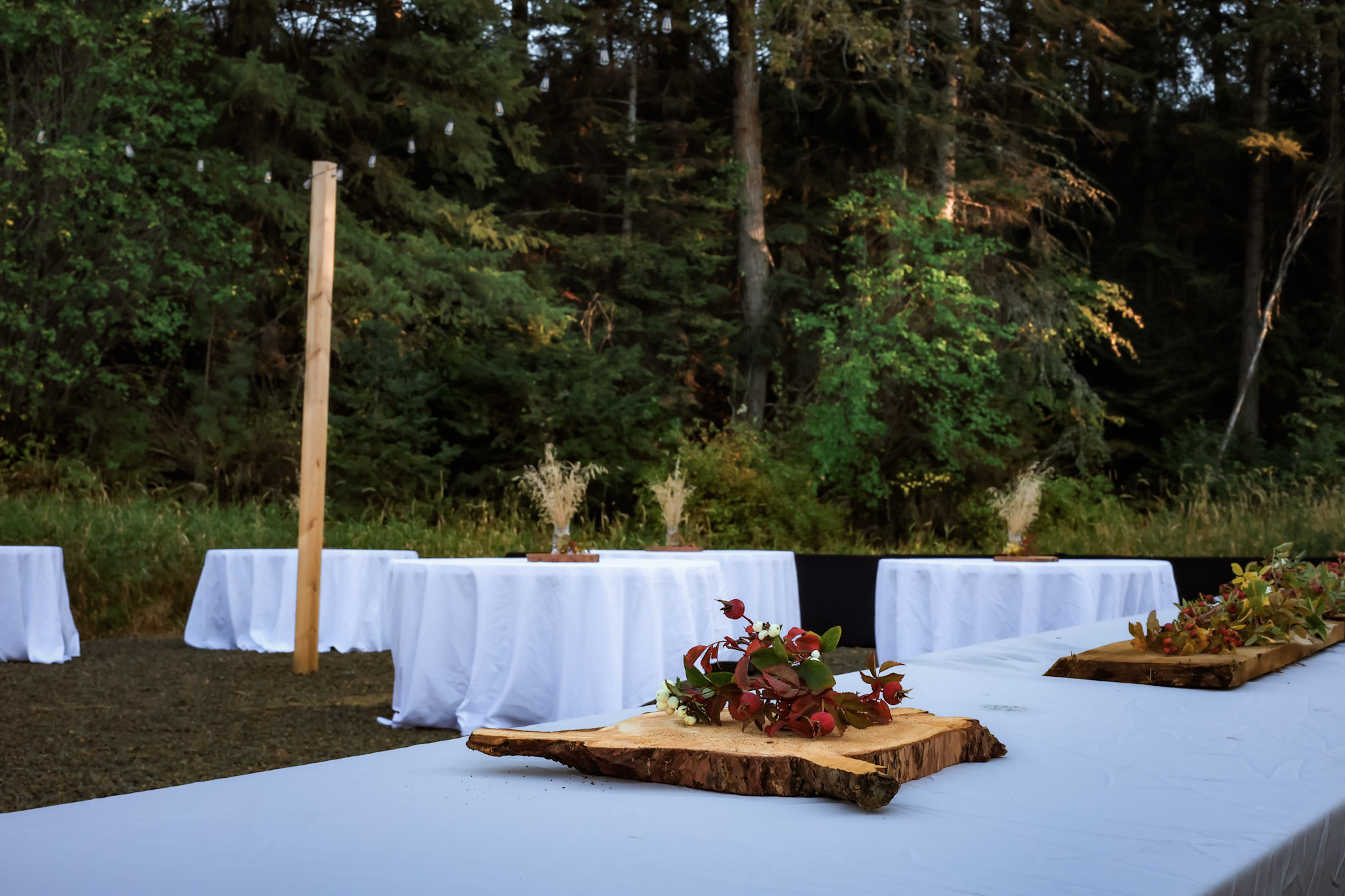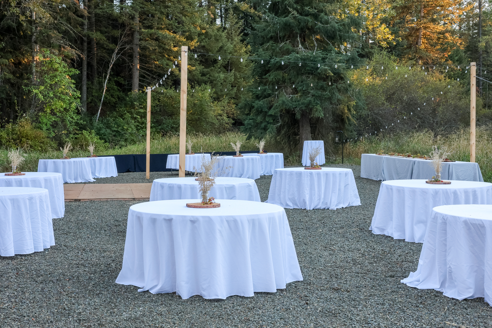 We are an off grid venue. We provide near silent generators (we happy to showcase them during a tour), portable restrooms tucked into the greenery, and overhead lighting. The lights create a cozy atmosphere with lighting over the ceremony space, reception, space, and along walkways and the bridge.